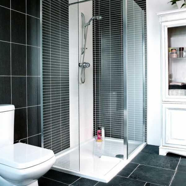 При обустройстве душевого отсека можно занять меньшую площадь, чем необходимо для кабины. При этом стеклянная перегородка не будет «съедать» пространство.