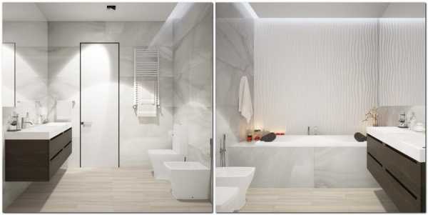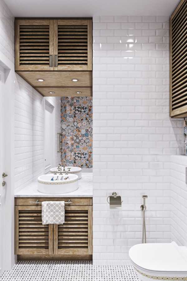 Эта разновидность оформления пространства помещения ванной прекрасно подойдёт для семьи, которая состоит из 3 человек.