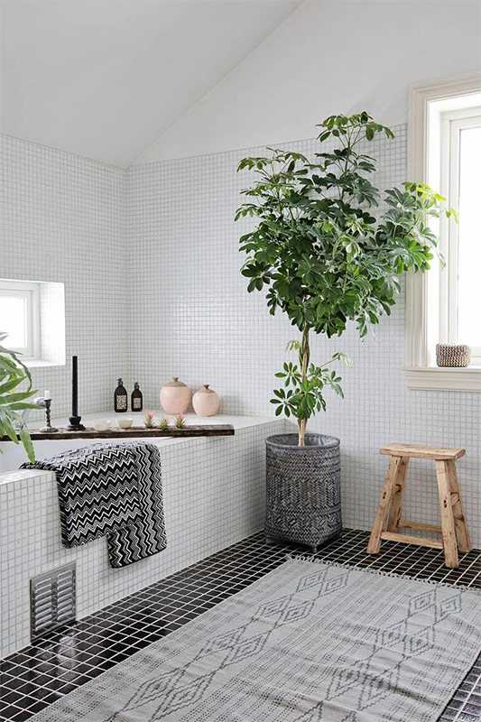 Растения, как ничто другое, способны добавить цвет и яркость в пространство, которое в противном случае будет выглядеть достаточно монохроматично. Особенно актуально это для скандинавского стиля. Кроме того, присутствие в изолированном помещении чего-то живого кажется очень привлекательным и манящим, поэтому, наверное, идея размещения комнатных растений в ванных комнатах кажется многим достаточно интересной.