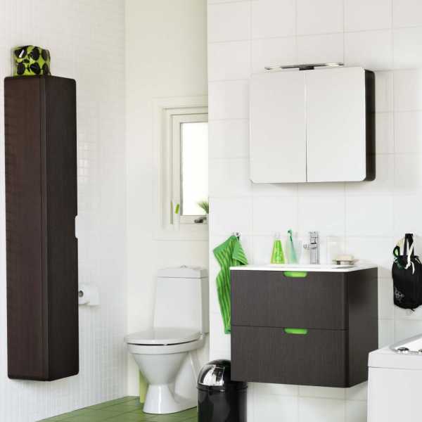 Совет! Часто вешают при этом над умывальником зеркало. Оно не только используется в чисто утилитарных целях, но и позволяет визуально увеличить площадь небольшого помещения.