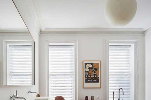Ничто не является более скандинавским, чем светлая древесина, поэтому рассмотрим различные способы привнесения ее в ванную комнату. Разместите здесь деревянный шкафчик или тумбочку для хранения разных мелочей или отделайте деревом часть стены. И не сильно принципиально, выберите ли вы массив дерева, шпон или ламинированную ДСП. В изображенной на фотографии роскошной ванной комнате деревянный подвесной туалетный столик гармонично сочетается с деревянными же подвесными светильниками.