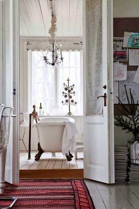 Просто будет отлично, если вы привезёте из Норвегии или Швеции какие-нибудь предметы народного творчества. Это могут быть предметы из текстиля: коврики, полотенца, занавески и шторки для ванны. Их можно использовать как по назначению, так и применить исключительно в виде декоративных элементов. С ними помещение ванной комнаты заиграет новыми красками и будет полностью соответствовать духу скандинавского стиля дизайна помещения.