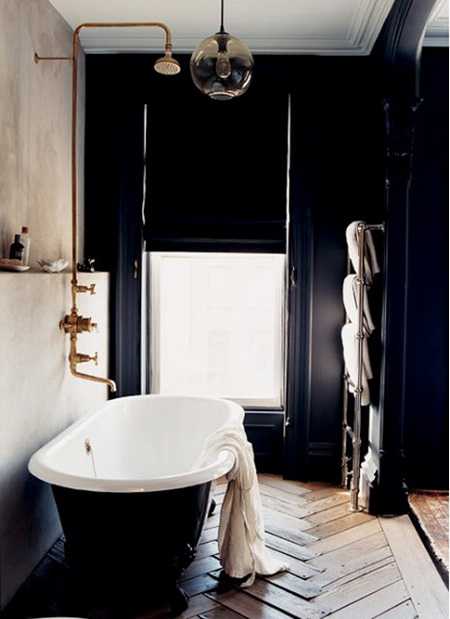 Мы все любим погружаться в ванну, а как насчет погружения в ванну, которая сама по себе уже погружена? Если у вас достаточно много места, разместите ванну в центре помещения и «утопите» ее в пол. Вы делаете шаг вниз, погружаетесь в воду… и чувствуете себя как в собственном спа-салоне. Чтобы усилить очарование скандинавского стиля, добавьте небольшую дровяную печь и поленницу, тогда в большом помещении даже зимой будет тепло и уютно.