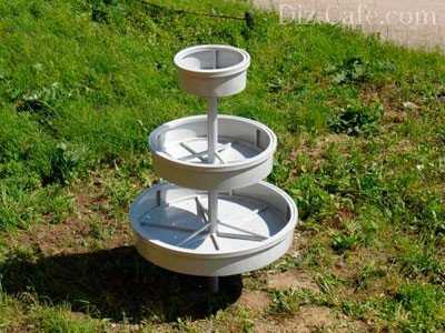 При самостоятельном изготовлении вертикальной клумбы внизу устанавливается самый объемный ящик, сверху располагается емкость меньших размеров. Три-четыре яруса будет достаточно для удобного ухода за растениями.