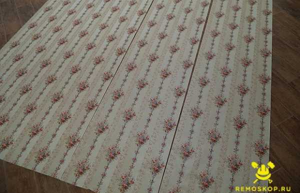 - Поочередно от рулонов отрезаем полосы для оклейки и рисунок подбирается «сам».