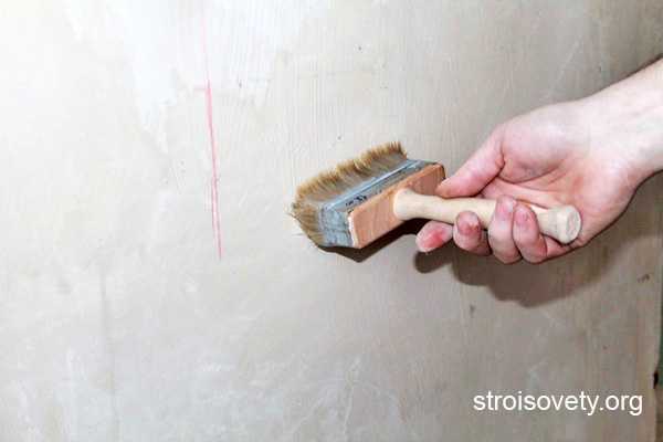- Удалите со стен старую отделку: обои, побелку, краску. Поверхность должна быть ровной