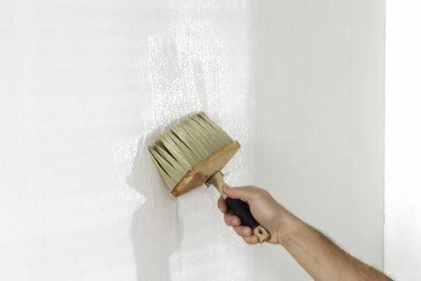 - Разведите клей для виниловых обоев и загрунтуйте им стену
