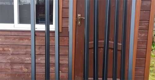 Для крупных собак необходимо создать крепкую конструкцию, поэтому профильные трубы, используемые для создания решетки, привариваются к швеллеру или крепятся тугими болтами. При работе не забудьте оставить достаточно места для установки двери.