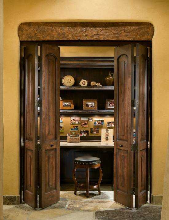 Также за такой дверью не плохо бы разместить подсобное помещение, гардеробную, мастерскую или кладовую.
