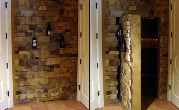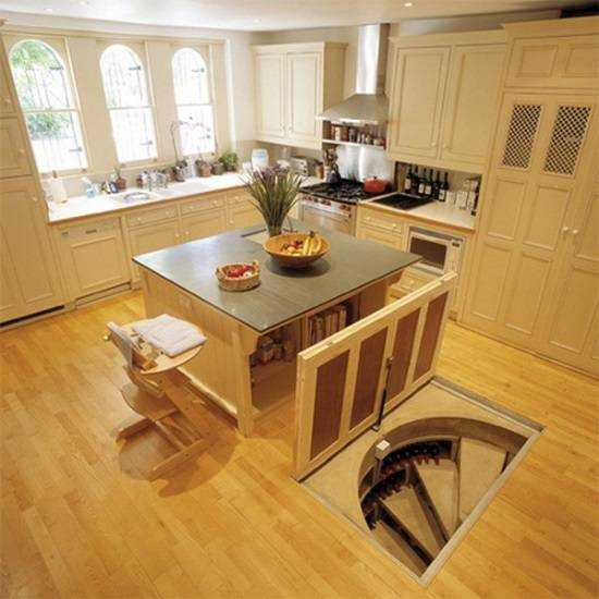 Расположенная рядом с винным погребом, эта потайная комната скрывается за книжными полками, к которым можно легко получить доступ, просто переместив одну из них. Шикарная и функциональная.