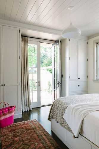 Вместо установки нескольких длинных шифоньеров можно отрезать кусок помещения и сделать гардеробную — сама комната при этом останется легкой и светлой.