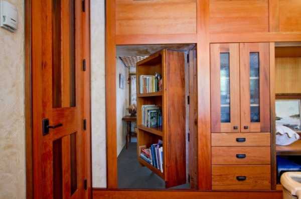 20Проход в тайную комнату через книжную полку в доме у озера Wenatchee в Washington, USA.