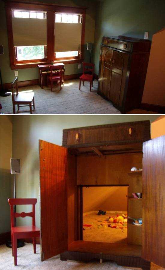 В обычном шкафу за платьями… скрывается вход в тайную комнату. Все как в сказочной Нарнии! Хорошая идея для любящих родителей.
