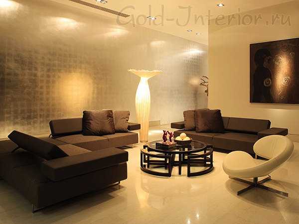 - Если в интерьере предусмотрены темные стены и мебель, желательно использовать в дизайне большое количество светлых аксессуаров и напольное покрытие белого цвета. Иначе интерьер получится «грузным» и мрачным.