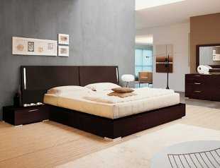 - При оформлении спальни, венге будет способствовать созданию некой строгости, характерной для стиля минимализм. Поэтому этот оттенок не подойдет любителям будуарного интерьера и многообразного декора.