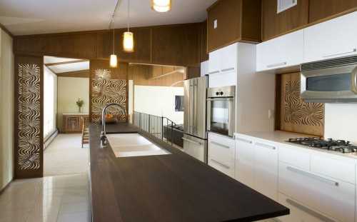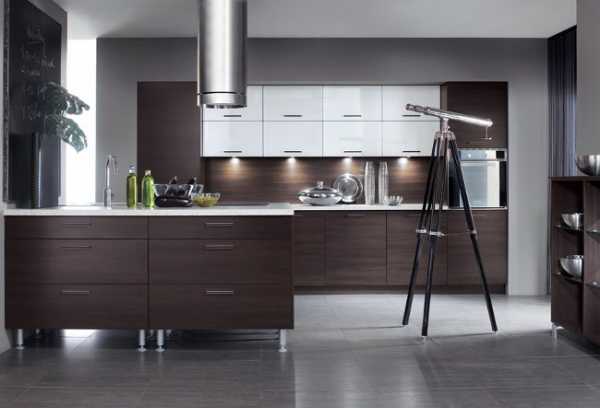 Древесина венге, а также ее имитация выглядят довольно эффектно и изыскано, что способствует созданию оригинального интерьера. Кухонные гарнитуры данного цвета имеют, как правило, лаконичные формы в стиле минимализм. Кухня из этого дерева оптимально впишется в стиль модерн, хай-тек и минимализм, однако не менее хорошо будет смотреться и в этническом интерьере. Для оформления дизайна стоит учитывать несколько важных моментов: