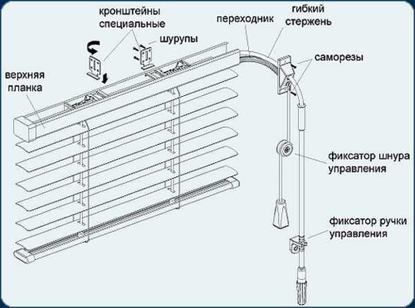 В принципе, это вся технология установки горизонтальных жалюзи. Теперь до полной их работоспособности остается не так уж и много – установить небольшую трость, вращение которой позволяет поворачивать ламели вдоль горизонтальной оси. Полное открывание жалюзи осуществляется путем протяжки специальной нити.