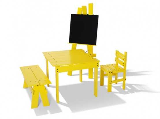 » » Забавная желтая детская мебельДетская мебель обязательно должна быть веселой. Дизайнер Джеспер Томсен (Jesper Thomsen) представляют новую коллекцию мебели. Джеспер назвал результат своей работ очень просто – Play. Коллекция включает в себя скамьи, стол и стул. Все предметы мебели выполнены в ярко-желтом цвете. Каждый из представленных предметов полностью продуман и будет идеально безопасным для вашего ребенка. При разработке были использованы только натуральные материалы ввиду того, что детям всегда нужно преподносить лучшее. Теперь они смогут учиться, писать на доске, играть с автомобилем и сидеть на забавных скамейках и стульях. Пусть ваши дети пользуются этой смешной, яркой экологически-чистой мебелью.