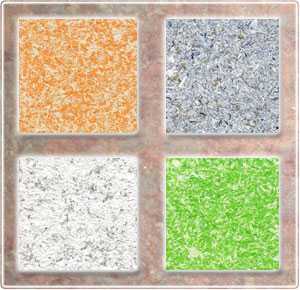 Данная смесь изготавливается на основе натурального целлюлозного волокна. Его предварительно измельчают до необходимого размера, добавляют туда красители, декоративные добавки и собственно клеящий состав (в данном случае применяется клей КМЦ).