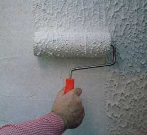 Наносим на стену небольшое количество смеси и раскатываем ее валиком в разные стороны. Следите, чтобы между «кусками» покрытия не было пустот или трещин.