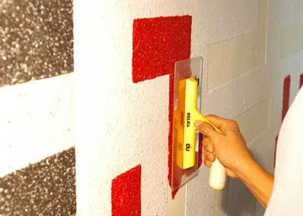 Для материала предусмотрены и специальные терки, которые отличаются от обычных тем, что обладают зауженным полотном. Довольно часто их выполняют из прозрачного пластика, чтобы у мастера была возможность контролировать процесс разглаживания. Нанесение осуществляется достаточно просто, технология в данном случае схожа с нанесением шпаклевки.