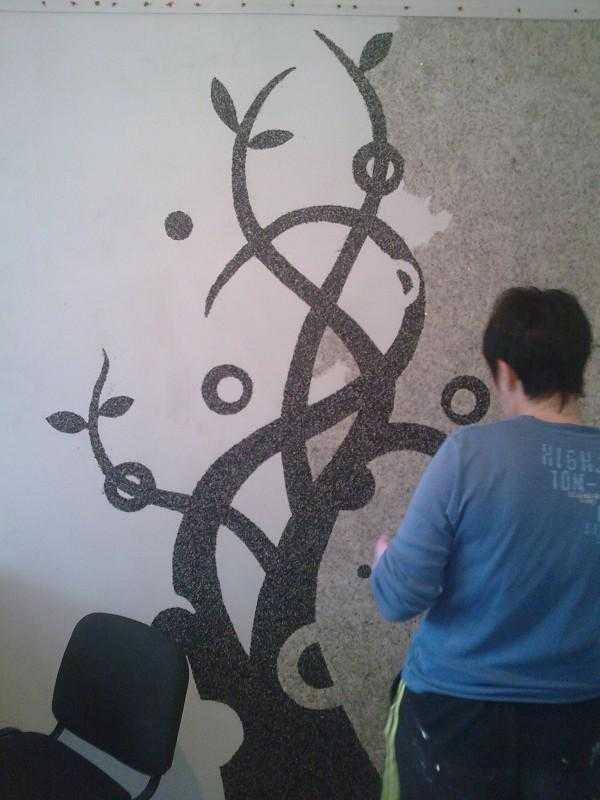 Наклейка жидких обоев может легко заменить распространенные бумажные или виниловые полотна.