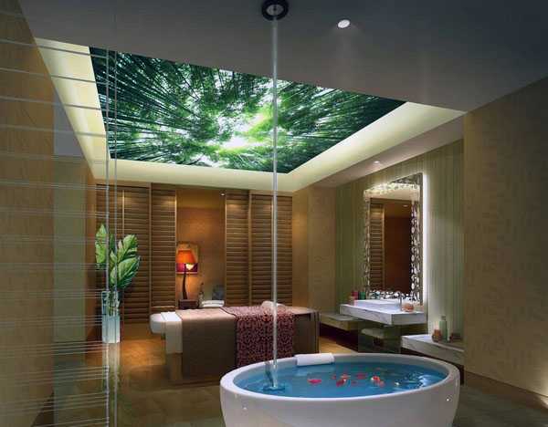 Впечатляющие идеи дизайна потолков в ванной комнате.