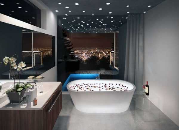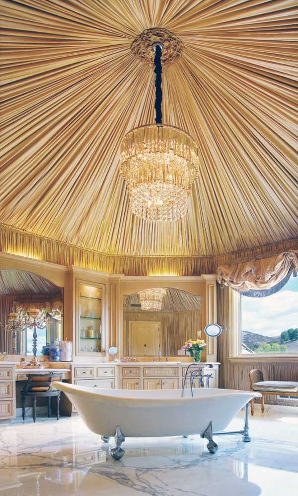 Современные дизайнерские идеи для ванной комнаты являются привлекательной особенностью интерьера и часто имеют непрямое светодиодное освещение или захватывающие люстры, которые улучшают красоту потолка и добавляют романтическую атмосферу ванной комнаты. Многие люди считают, что ограниченное пространство ванной является пределом творчества, но эта статья докажет их неправильность. Благодаря творчеству и неограниченному воображению вы можете создать отдельный мир, великолепную расслабляющую зону, частный романтический уголок, где вы сможете насладиться собственным миром. Эффектные потолочные конструкции в ванной могут быть потрясающим визуальным эффектом в дизайне, истинным фокусом и шедевром, который вы можете наблюдать, принимая расслабляющую ванну и пробуя бокал вина.