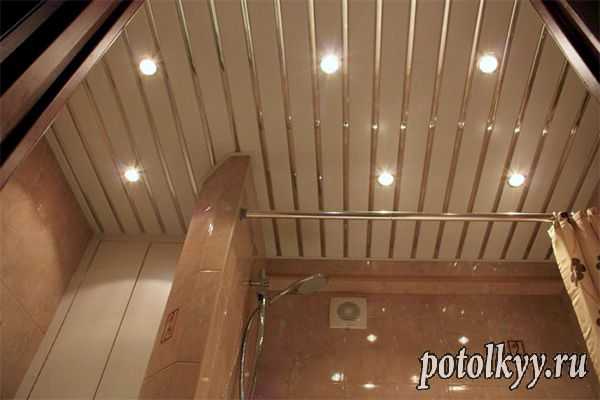 Фото потолков в ванной комнате: натяжные пластиковые, реечные потолки. Фото дизайна потолков