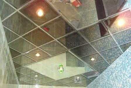 Потолок, украшенный зеркальными панелями выбирать должны те, кто уверен в том, что отражающая поверхность будет своевременно и тщательно очищена от следов пара и других загрязнений, в противном случае, смысла в установке зеркал на потолке нет, так как в них будет трудно рассмотреть даже отражение верхнего осветительного прибора.