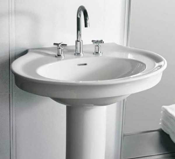 Такой вид умывальника имеет множество неоспоримых преимуществ, основными из которых является невысокая стоимость и пьедестал, которой отлично может замаскировать коммуникации. Благодаря пьедесталу внешний вид ванной комнаты более эстетичный. Умывальники с пьедесталом считаются одними из самых популярных моделей для ванных комнат.