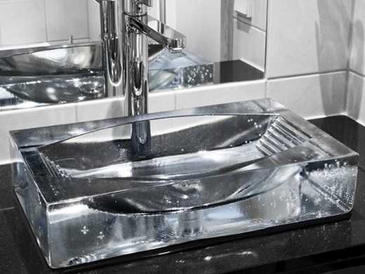- стеклянными умывальниками увлекаются самые настоящие ценители и эстеты. Такие раковины изготавливают из закаленного, по-особенному прочного стекла. Они отменно сочетаются с самыми разнообразными интерьерами и отвечают даже самому взыскательному вкусу;