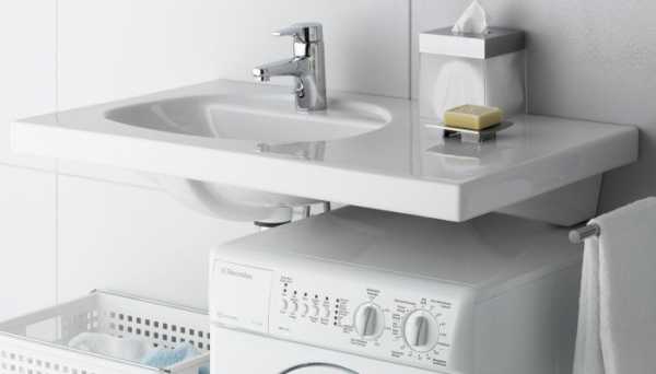 Встроенные умывальники смотрятся не столь эффектно, как другие виды. Но большим преимуществом является то, что они значительно экономят пространства ванной комнату. Встраиваются умывальники чаще всего в стиральные машины.
