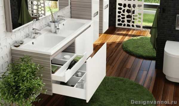 Тумбовый умывальник для ванной – это уже нечто. Он обладает расширенным функционалом и с точки зрения дизайна ценится выше. Такой умывальник скорее можно отнести к мебели для ванной. Он состоит из двух частей – тумбы и самого умывальника. Тумба является отличным вместилищем для хранения всевозможных ванных принадлежностей и хорошей маскировкой для сифона и других коммуникаций.