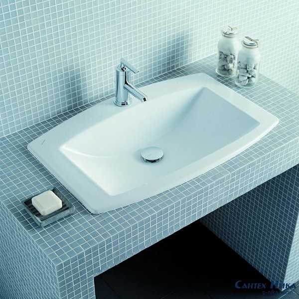 Встраиваемый умывальник используется крайне редко, его сфера применения – это просторные ванные комнаты, оборудованные столешницей и зеркалом для макияжа. Этот умывальник чем-то напоминает кухонную мойку – для его установки в столешнице проделывается круглое отверстие.