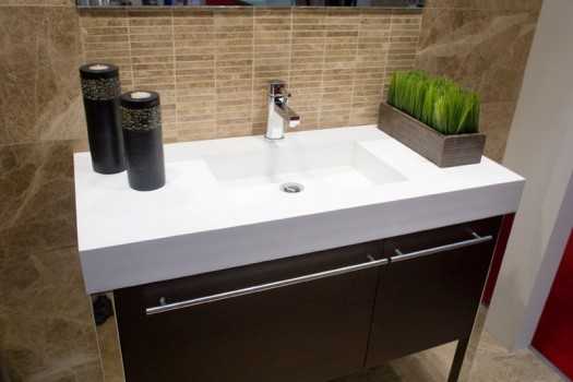 Именно поэтому чаще используют умывальники для ванной комнаты из искусственного камня (композитных материалов), такие как кориан. В отличие от натурального камня, они почти не царапаются и не впитывают грязь.