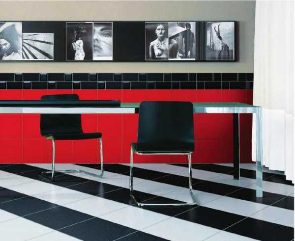 - контраст темного пола и светлых стен является нестареющей классикой, дающий интересный оптический эффект; также отличным решением для являются 3D изображения на плитках в сочетании со спокойными однотонными стенами.