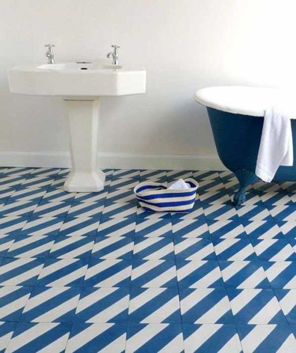 Лучше выбирать однотонные материалы, либо с мелким узором и геометрическими орнаментами. Горизонтальные линии расширят пространство, а вертикальные – вытянут. В большой ванной позволительны любые дизайнерские эксперименты, а скорректировать пространство можно, прибегнув к тем же оптическим хитростям.